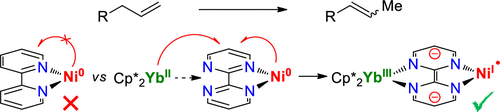 We develop f-element and transition metal complexes in non-usual oxidation states for various catalytic applications. Particularly, we are experts in the design of low-valent lanthanide chemistry and high-valent palladium chemistry, including high-valent alkyl complexes. The original complexes are designed and characterized with a comprehensive set of spectroscopic and theoretical tools so that the link between the structure, the electronics, and the reactivity can be made. The project has been supported by the European Research Council from 2017 to 2022 and is still running between Grégory Nocton and Grégory Danoun.